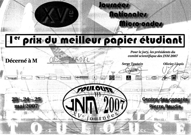 15eme Journées Nationales Micro-ondes (JNM),3C1 , Toulouse, Mai 2007.